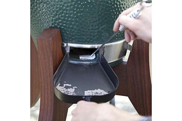 The smart feature of this Ash Pan is that it hooks onto the vent door at the bottom of your EGG, ensuring the ash can be easily removed without creating a mess on the ground, or your table.