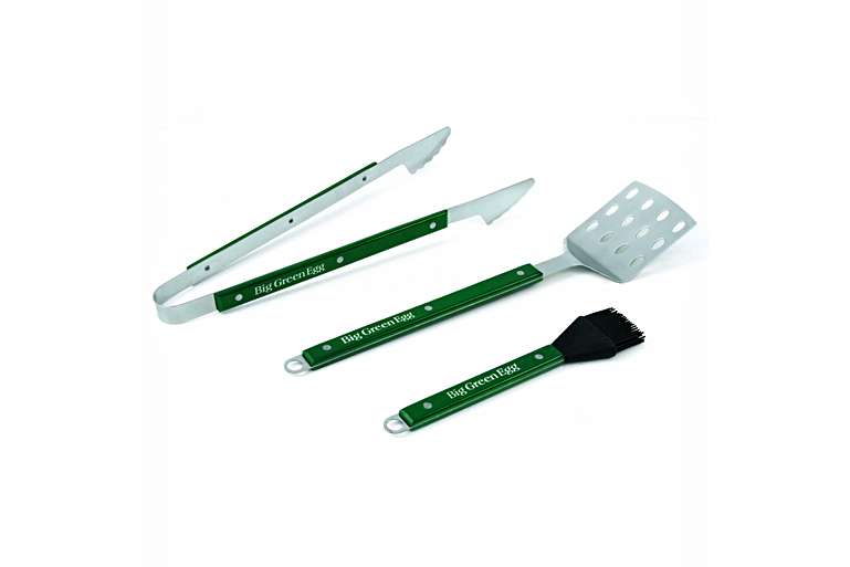 This 3-piece stainless steel barbecue tool set includes everything you need for your cookout! Stainless steel shafts keep heat safely at a distance, and solid wood handles provide a comfortable and secure grip. Care: Hand wash with mild soap; rinse and dry after use. Do not use abrasive scrubbers.