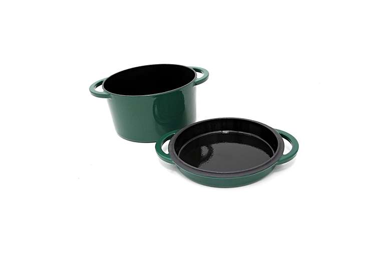 Enjoy EGG to table convenience! This Enamelled Cast Iron Dutch Oven is ideal for slow-cooking, braising, roasting, simmering and baking. It has excellent heat retention as the cast iron distributes heat slowly and evenly and the durable enamelled surface is eay to clean and is dishwasher safe. The lid also doubles as a shallow baking dish or serving platter.