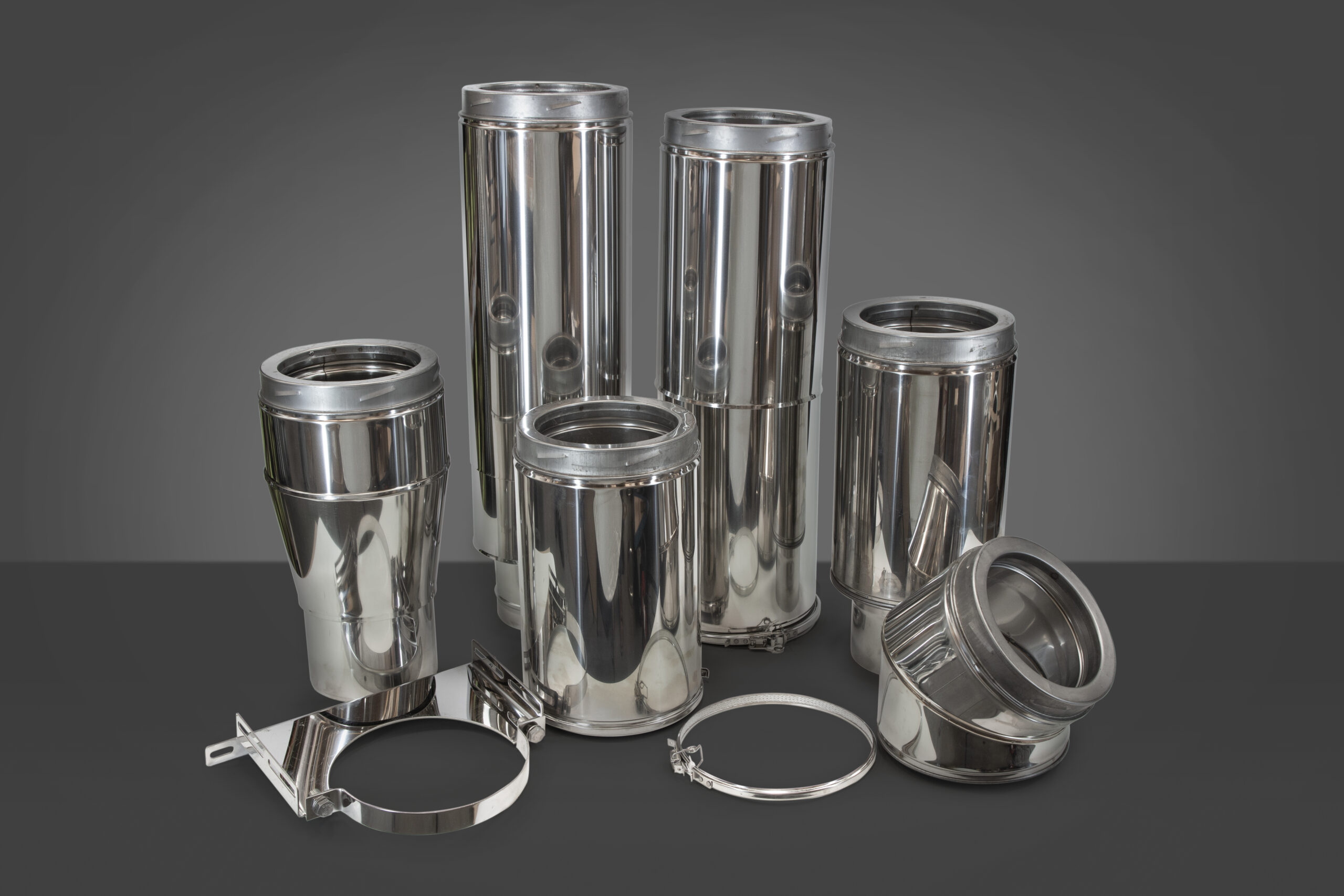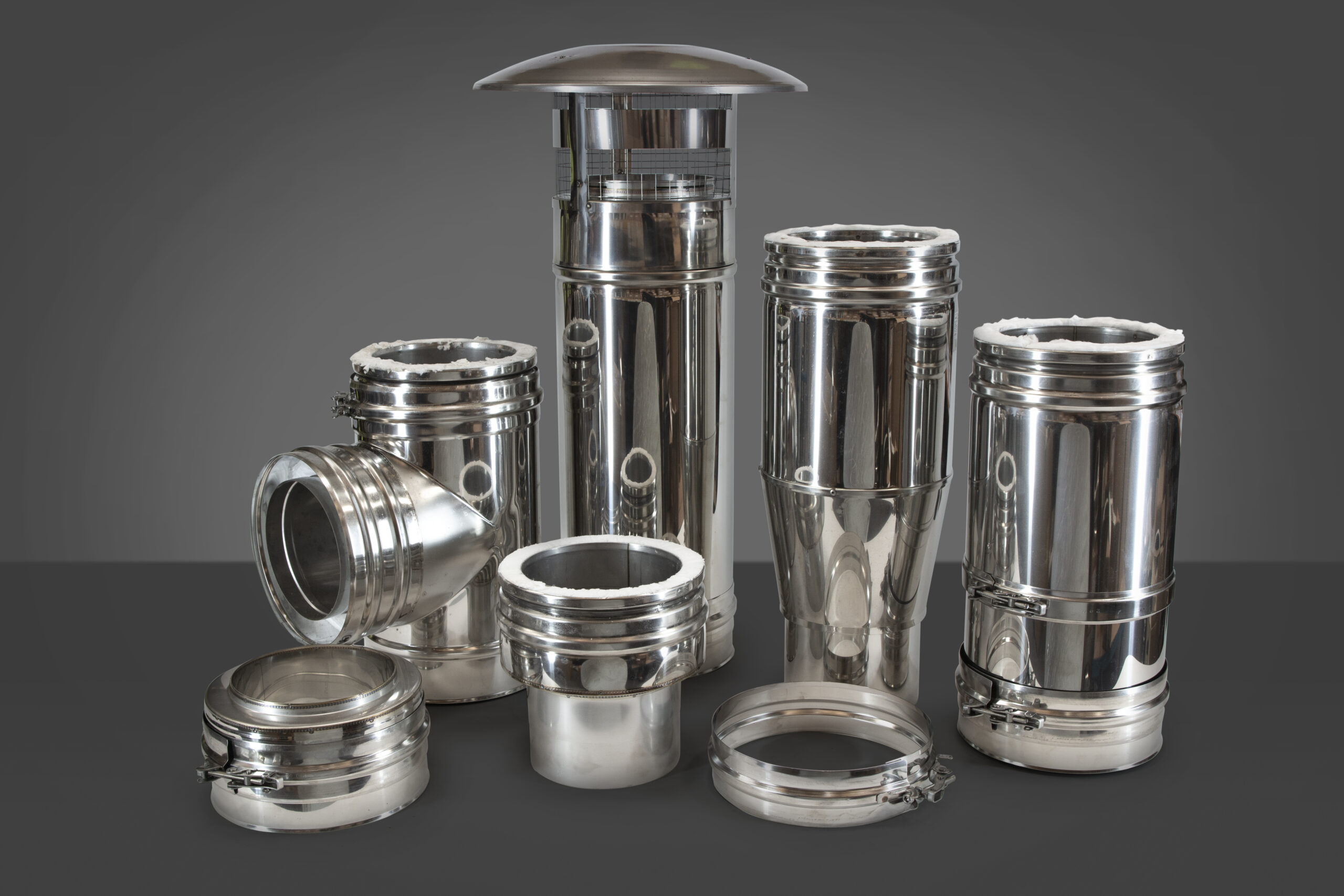 simple push fit or twist lock jointing arrangement, these stainless steel chimneys can be installed in record time, and come in a comprehensive choice of pipe sections, bends and fittings to match almost any requirement.