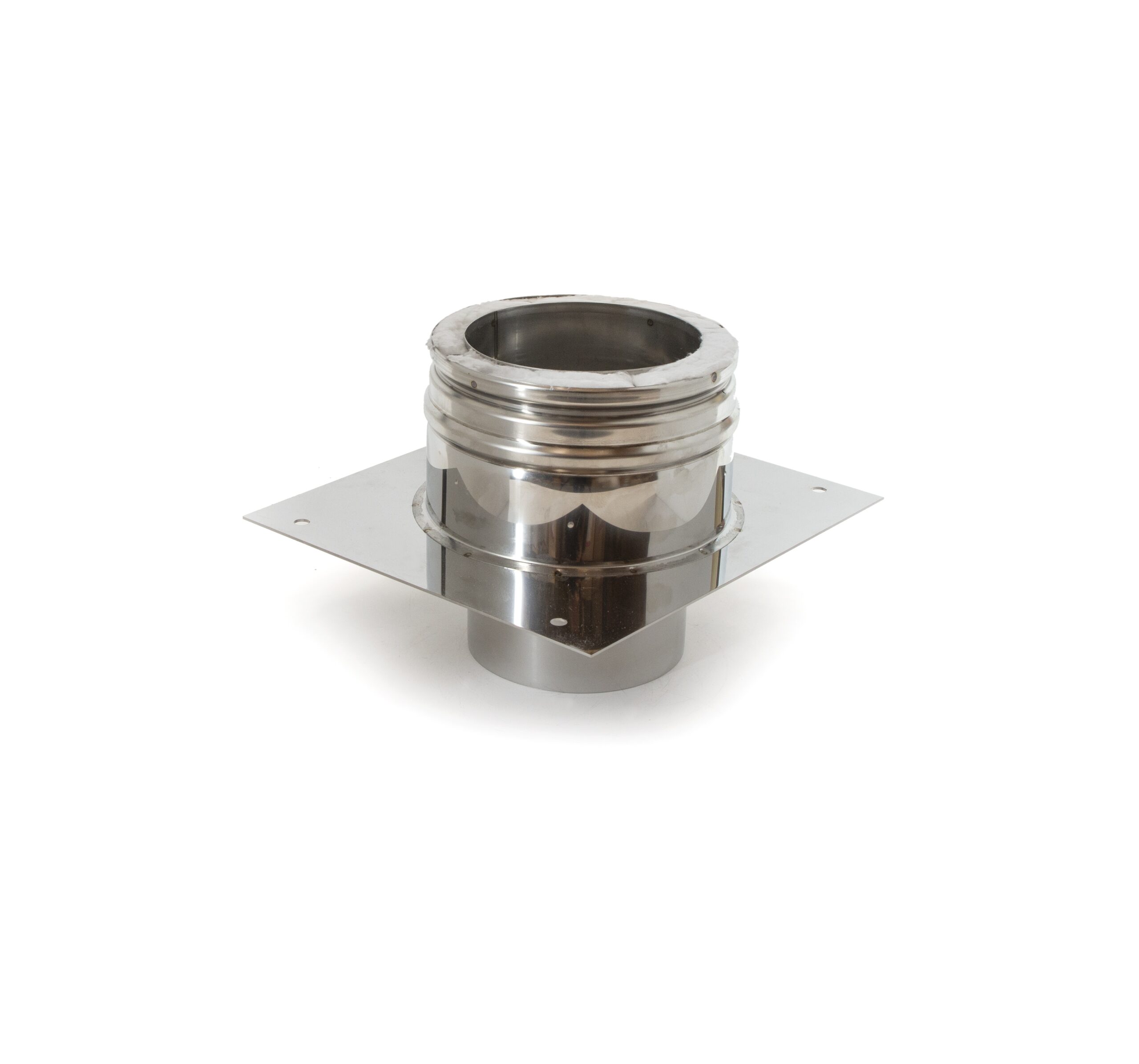 Typically used when re-lining a chimney and the external chimney stack has been taken down and is being replaced with a twin wall flue. Underside connects onto the flexible flue liner and upper side connects onto the Schiedel ICS twin wall.