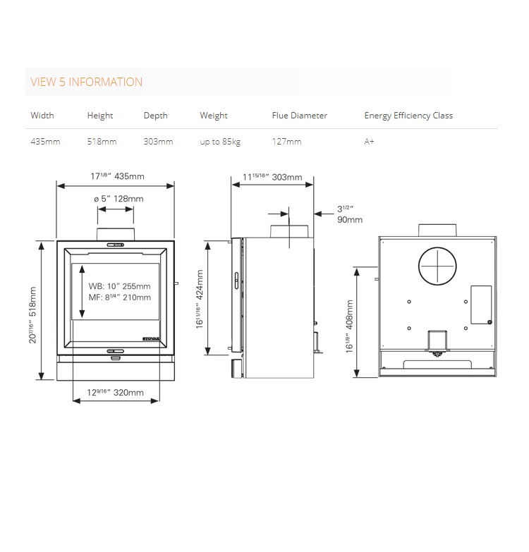 With its clean, crisp lines and modern styling, Stovax’s View 5 stove offers a fresh alternative for today’s interiors. It is available in two versions: wood burning only stove or multi-fuel stove. In addition, both versions can be enhanced by stainless steel air controls as well an optional glass top which provides even greater elegance for this versatile stove.