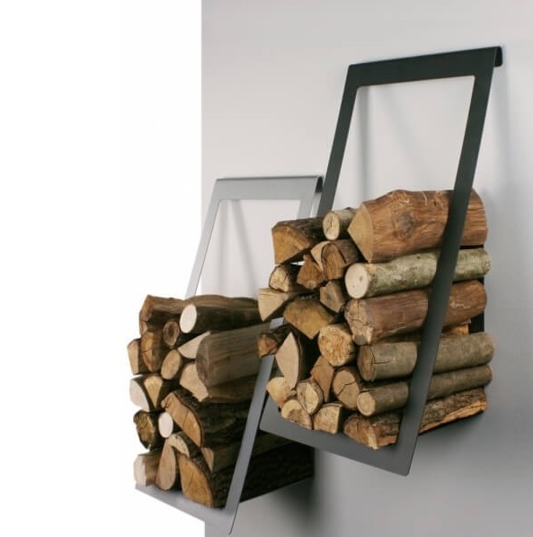 A space-saving design and alternative option to a traditional freestanding log holder basket. A wall-mounted firewood rack which offers a stylish and contemporary sturdy steel construction.