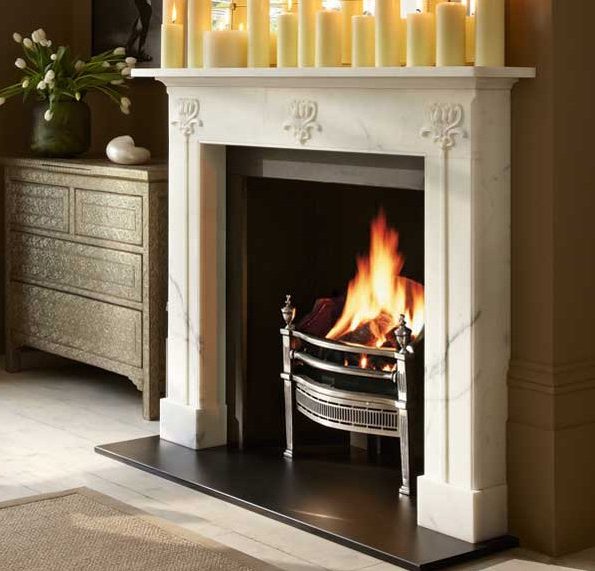 The Hulanicki Art Nouveau surround is carved in Statuary marble to allow the carver to work in the material best suited to capture in crisp detail the sinuous floral carving that characterises this delicate fireplace.