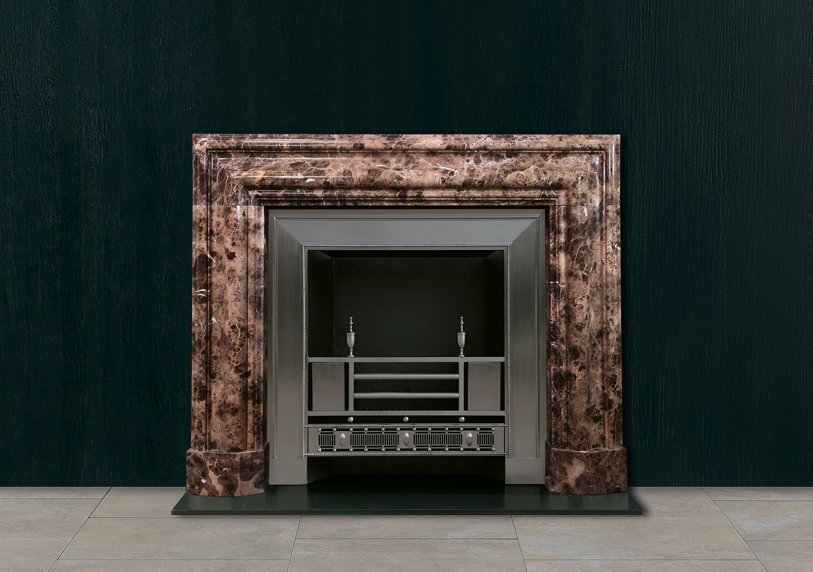 A bolection mould chimneypiece of generous proportions in Emperador marble.