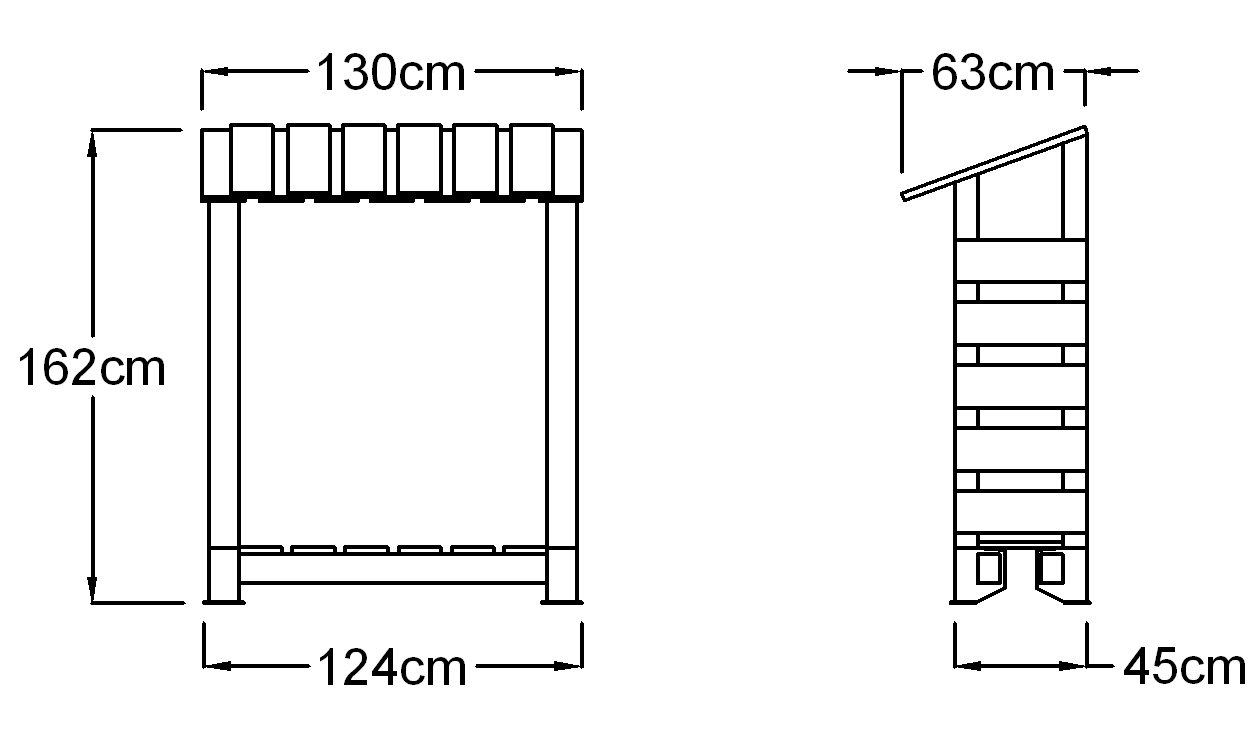 This store will hold approximately 2/3 cubic metre of 14″ Logs. Dimensions: Width: 130cm, Height:162cm, Depth: 63cm