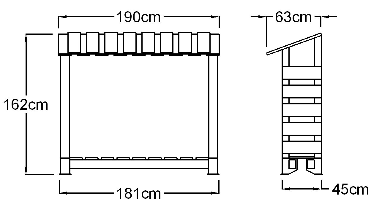 This store will hold approximately 1 cubic metre of 14″ Logs. Dimensions: Width: 190cm, Height:162cm, Depth: 63cm