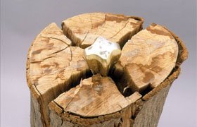 The explosive force in splitting logs. Extremely effective wedge with patented diamond head design for making easy work of log-splitting. Forged iron, heated, treated and hardened. Use with a sledge hammer or splitting maul.