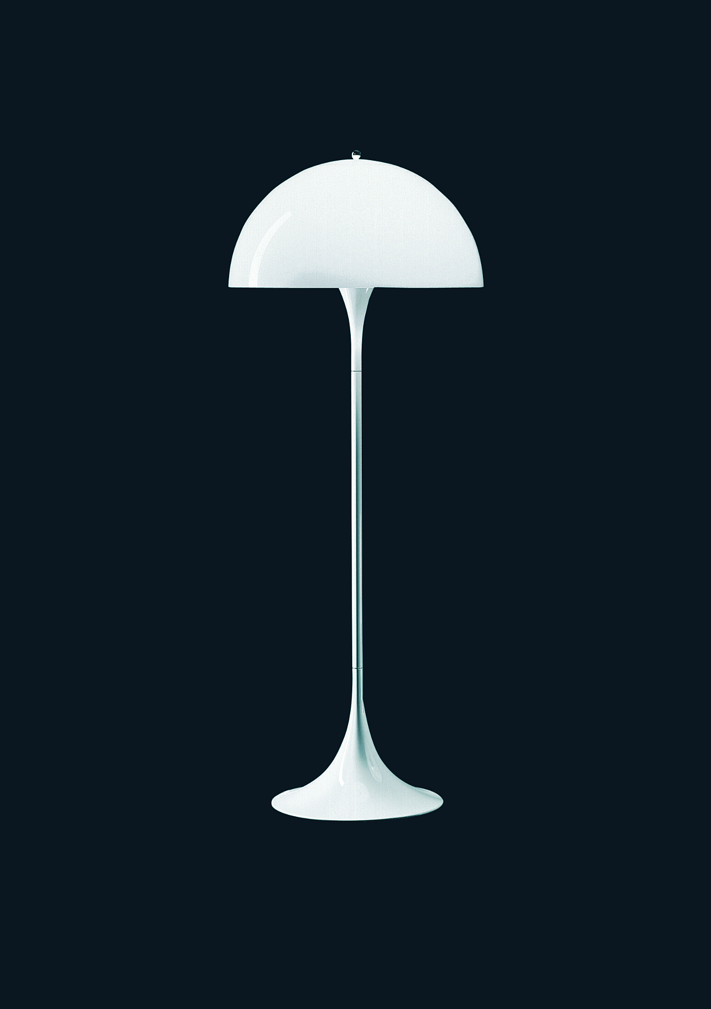 The fixture emits a soft and comfortable illumination. The hemispherical shade reflects the light downwards, and the material used ensures that the majority of the light is spread diffusely in the room from the surface of the shade.