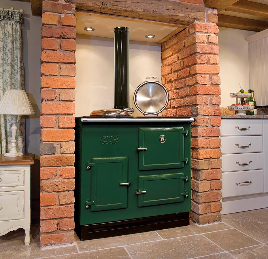 The Esse 905 WN is a beautifully traditional cast iron wood-burning cooker perfectly suited to your kitchen; clean-burning, fuel-efficient, and a pleasure to use – with a total oven capacity of 80 litres, and a large “dog bone” hotplate.