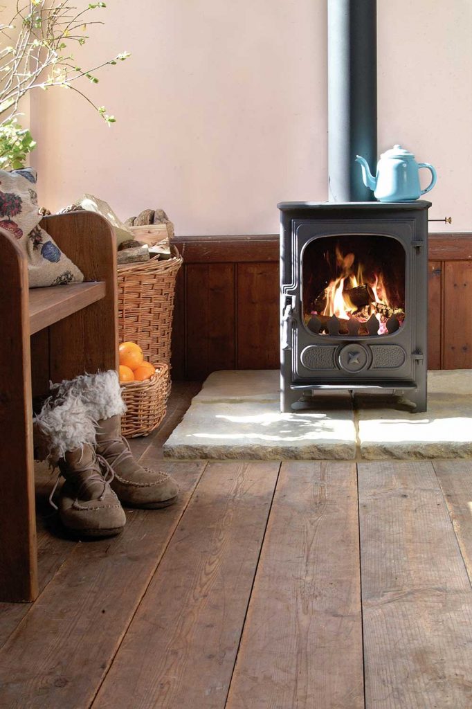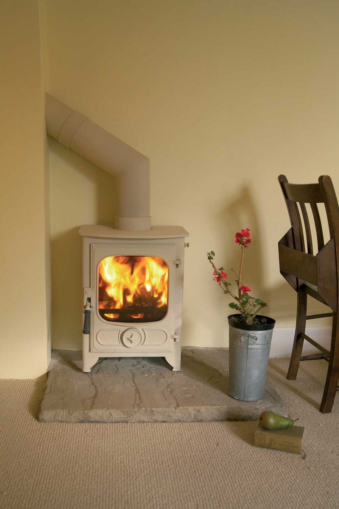 The Country 4 is the smallest model in the wood & multi-fuel room heating collection, yet still incorporates the ingenious features of the larger stoves. It is a neat, sturdy, yet graceful little fire and with a rated output of 4.8kW can be installed in certain situations, without the need for external air. The single door gives a complete and clear view of the fire and features a spinning primary air wheel for optimum control over the burning rate. In spite of its size, the Country 4 takes a decent sized log length of 330mm (13”) making it a very popular choice in the small stove market.
