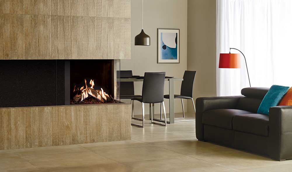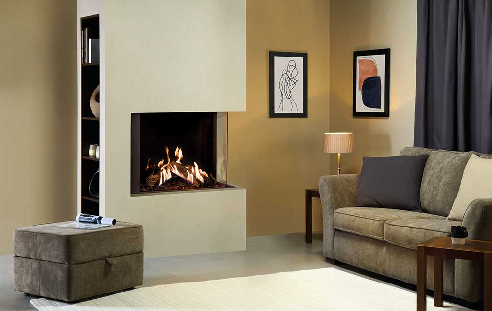 The Gazco Reflex two-sided and three-sided gas fires grant an unparalleled view of the stunning flame visuals, which can be viewed from almost anywhere in the room. These elegantly contemporary gas fires allow for a beautifully bespoke fireplace, whether positioned centrally or in the corner of the room. The two-sided 75T-2 is designed for corner installations and can be selected in either right or left corner versions to suit your home. The 75T-3’s panaromic display offers stunning views from any angle, with three sides showing the deep log composition and dancing flames.