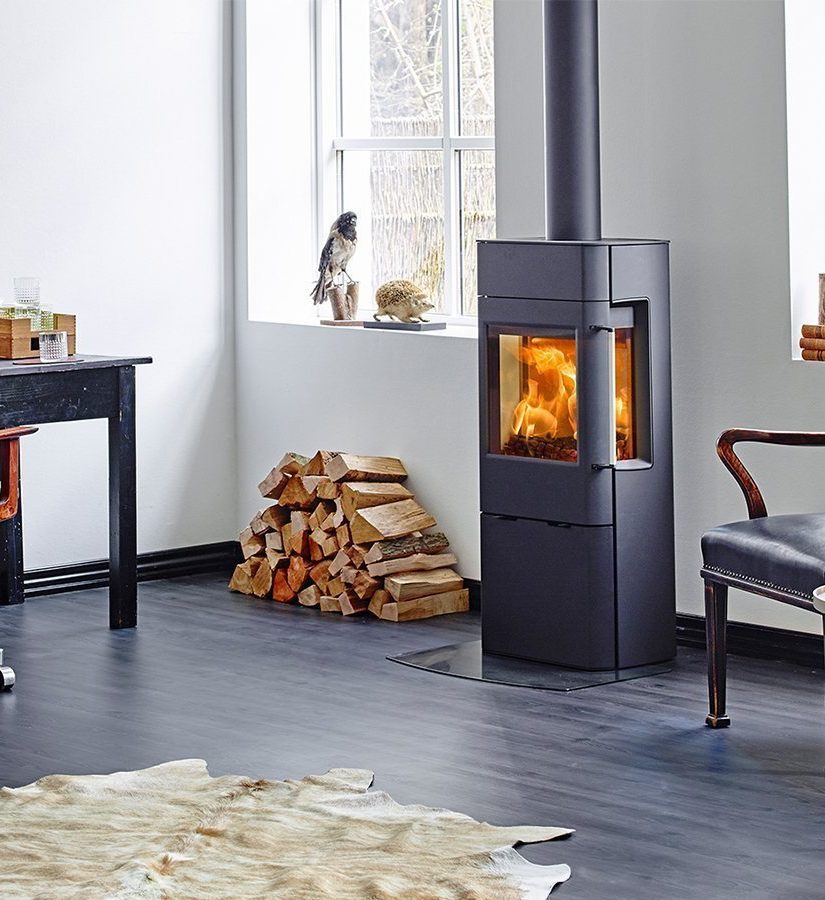 Scan 41 is a medium-sized stove with a large glass front door. This provides a perfect view of the flames, which also creates a warm and cosy ambiance. The stove is available with or without glass on the sides, so you can opt to have an even better view of the flames.