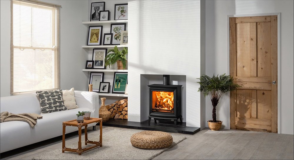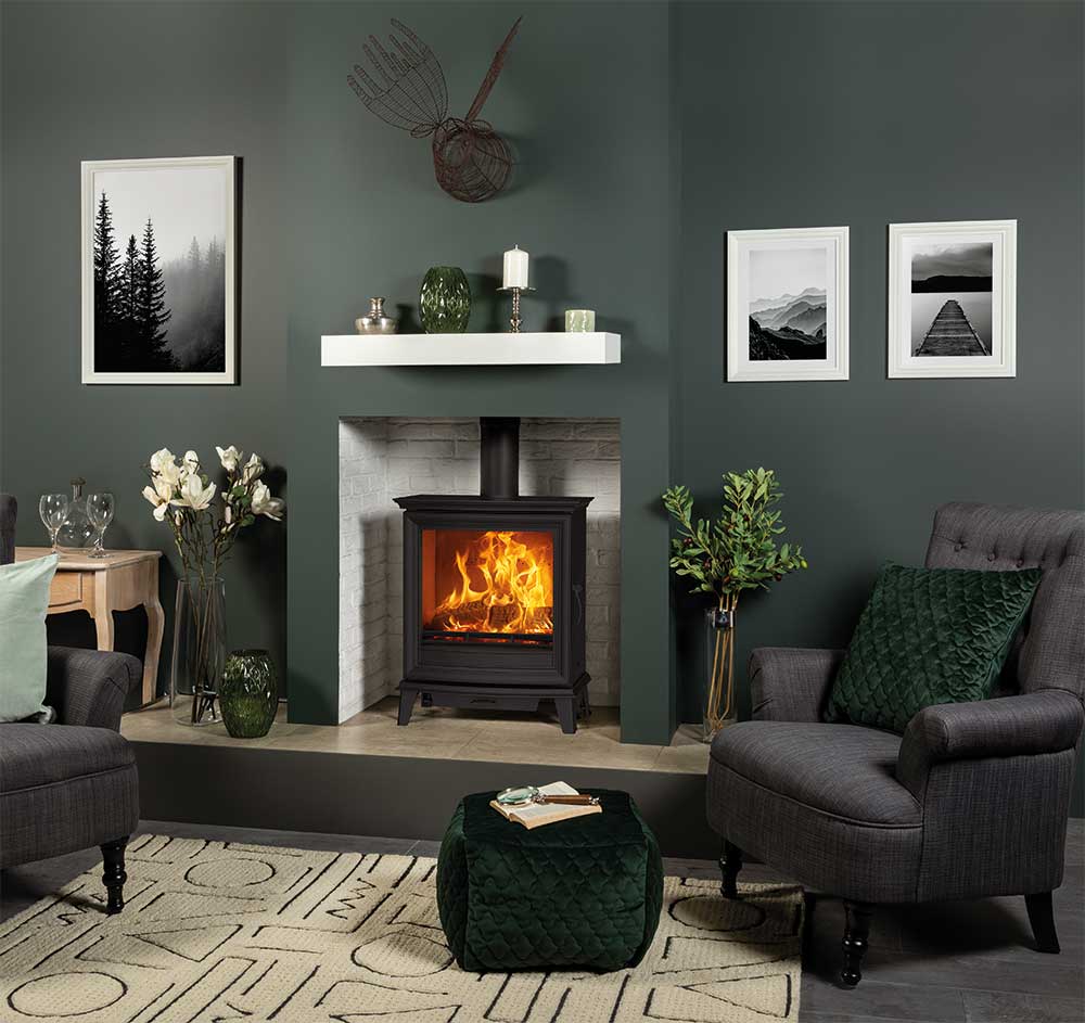 This large format, slimline wood burning and multi-fuel stove is perfect for settings. Where a shallower depth is required, without sacrificing flame visuals. Broader and taller than the Chesterfield 5, the Wide version provides a 5kW heat output and can be selected in wood burning or multi-fuel models.