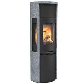 With a surround of heat retaining soapstone that goes around the sidelights you see a lot of the fire while the heat lasts for a long time. A lot of people choose to add heat retaining powerstone or a fan to the Contura 596T to gain an extra boost to the heat.